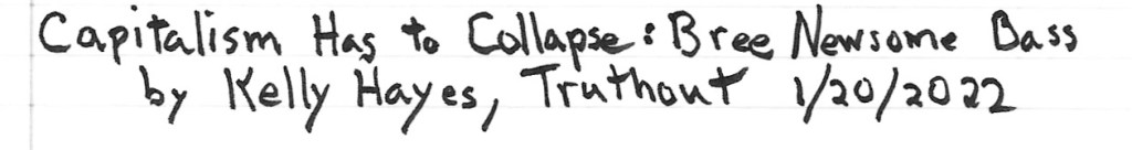 I’m always looking for other sources that can express this better. Because this message is critical. The following is from the interview “Bree Newsome Bass: ‘Capitalism Has to Collapse’” by Kelly Hayes, Truthout, January 20, 2022.
