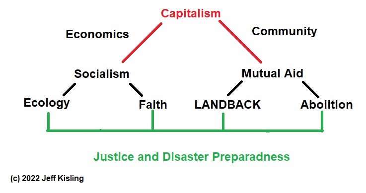 Following is a new diagram I’m working on to show relationships among systems. The reason justice is in today’s title is because so many of our current systems have injustices embedded in them. As we prepare for disasters, not addressing injustice would mean: