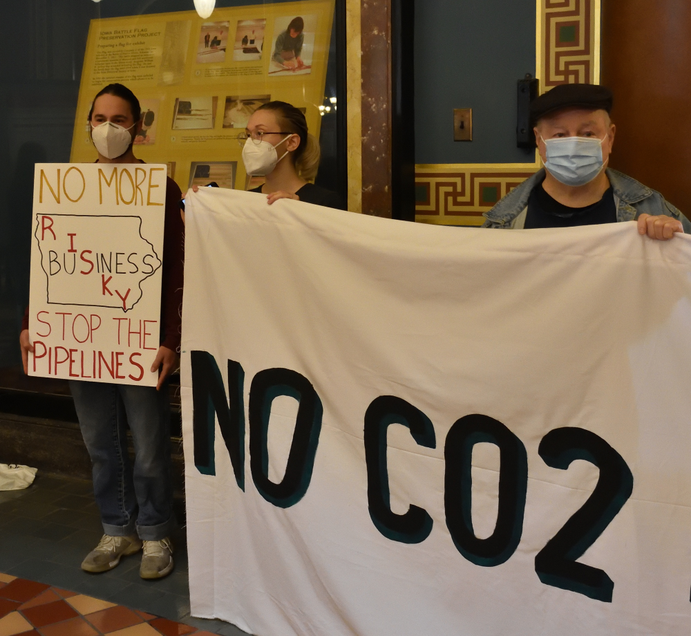 Iowans at Capitol push for stronger restrictions on eminent domain for carbon capture pipelines by Donnelle Eller, Des Moines Register, March 29, 2022
