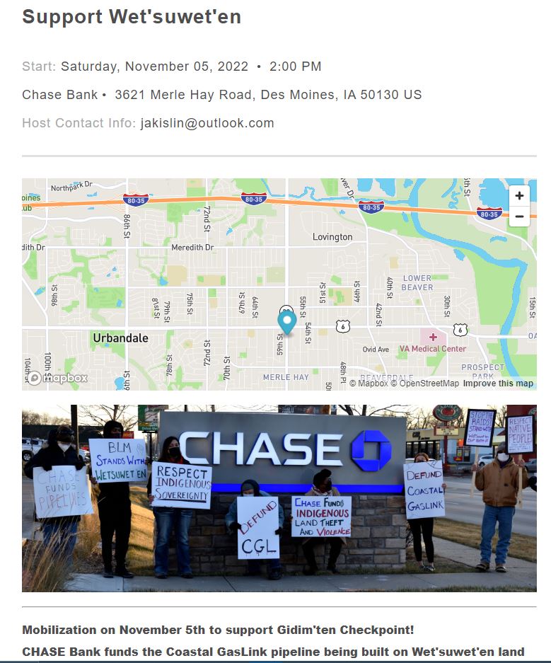 As an example, I’ve been led to support the Wet’suwet’en peoples’ call for international acts of solidarity on February 5th as they continue their years long work to stop the construction of the Coastal GasLink pipeline through their pristine lands. Armed Royal Canadian Mounted Police have provided protection for the construction, and much of the pipeline is complete. There is great urgency now because drilling under the river has begun.