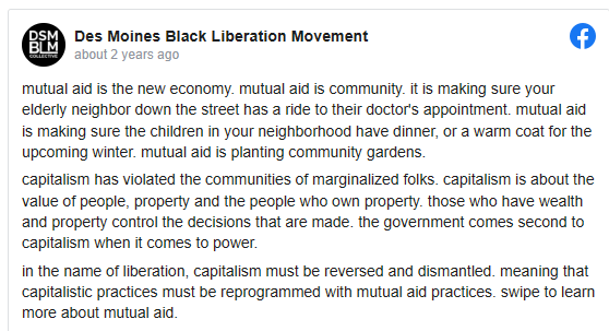 In January 2020, just before I joined, Des Moines Mutual Aid participated in a march protesting the potential for war or increased hostilities with Iran that followed the fallout of the assassination of Qassem Soleimani by a drone strike in Baghdad.