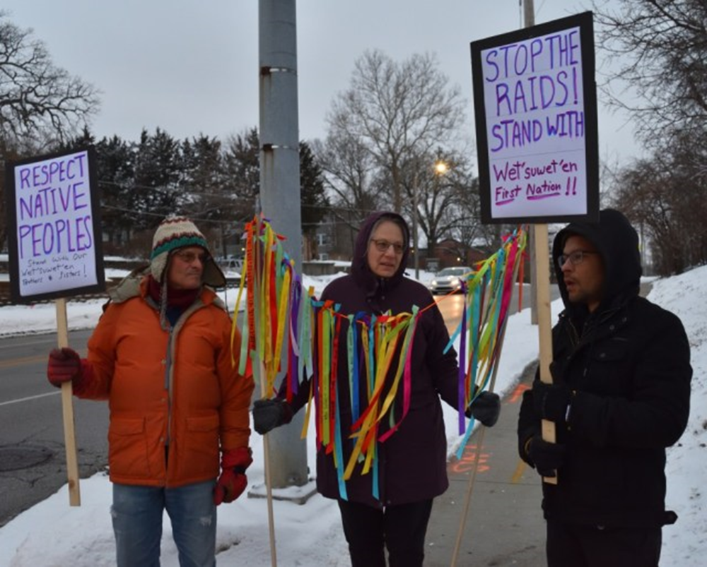 The arrests come days before Indigenous delegates are set to arrive at Royal Bank of Canada’s Annual General Meeting to oppose expansion of fossil fuels without consent on their territories, including Wet’suwet’en Hereditary Chiefs who oppose RBC’s funding of the Coastal Gaslink pipeline.