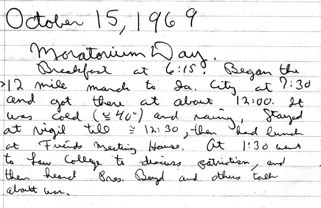 I want to thank you for your concerned questions at my personal appearance, when we were considering my position as a conscientious objector. I have appreciated Mrs. Landon’s kindness and consideration, even when I returned my draft cards. Thank you for giving me more time to consider this decision. I hadn’t realized what a powerful affect that action would have on some people. The extra time gave them, and me, a chance to come to grips with the decision and its consequences. However, my beliefs have remained basically the same and the time has come to act accordingly.