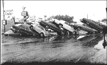 “Rapid City during the night of June 9-10, 1972 experienced one of the worst floods in the history of South Dakota. Fifteen inches of extreme rainfall over six hours sent Rapid Creek and other waterways overflowing… The Canyon Lake Dam became clogged with debris and failed, resulting in 238 deaths and 3,057 injuries… There were over 1,335 homes and 5,000 automobiles destroyed” (Wikipedia). They later were told a 12 foot high wall of water rushed down Rapid Creek through the center of Rapid City where the campground was located. Everyone in the campground was drowned”