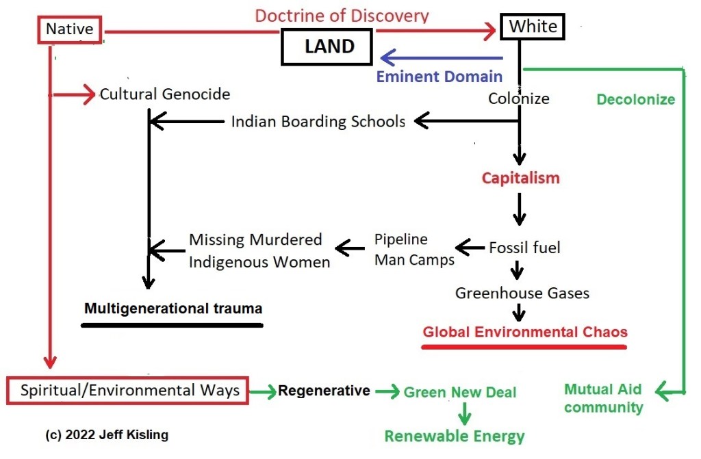 It is urgent now to develop relationships to support each other as environmental devastation will continue to collapse economic, political, and social systems. The only choices will be to return to Indigenous ways or violent tribalism.