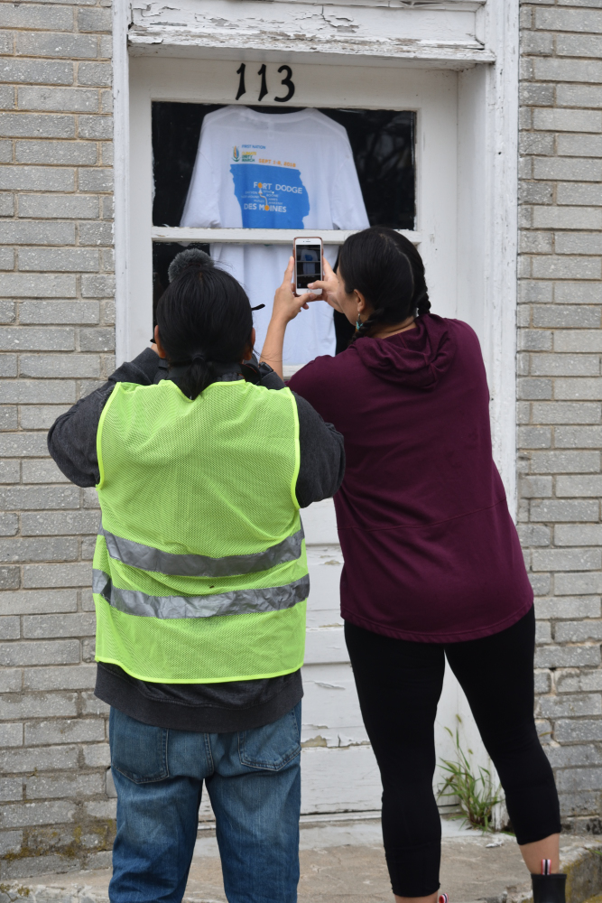 Day 6 of the First Nation-Farmer Climate Unity March began with another awesome breakfast by Lyssa Wade. As we were waiting to start walking we saw one of the March tee-shirts hanging in the window across the street.