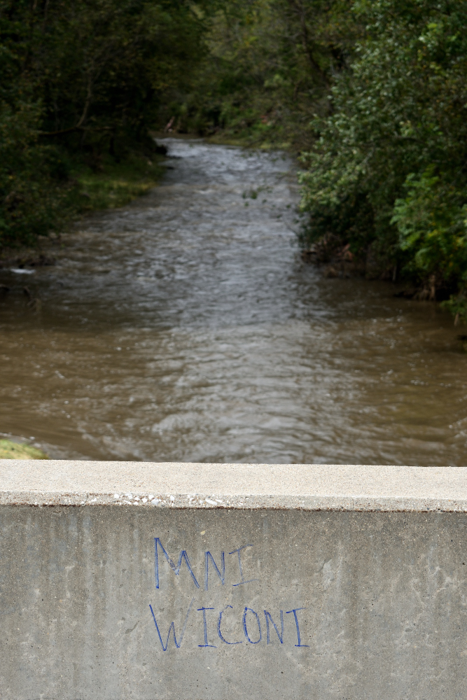 I don’t know if someone just made the name up, but this very steep hill was called ‘suicide hill’. At the bottom was a creek. On the wall of the bridge someone had previously written ‘Mni Wiconi”, Water Is Life.
