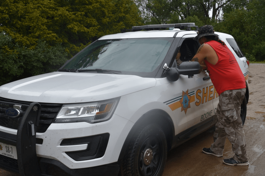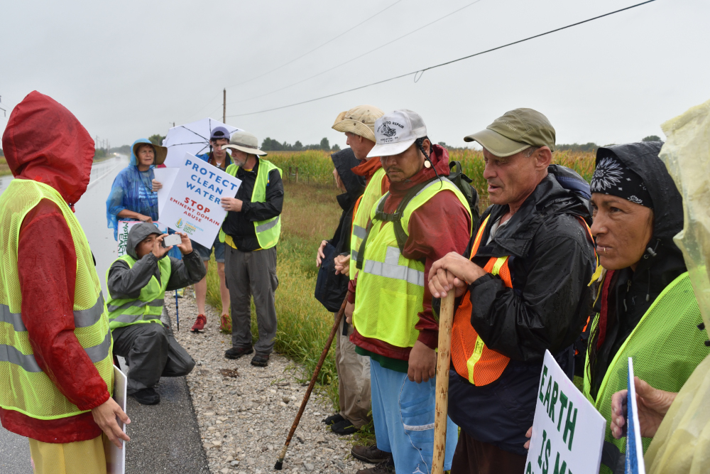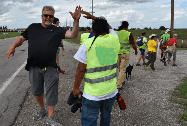 Once we arrived in Pilot Mound some of us noticed we were being followed by a car for a while. We learned the driver was Manape’s father, Frank, and he was just enjoying watching us march together. Frank has been a very active activist.