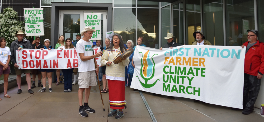 September 1 – 8, 2018, Sikowis, Donnielle, Trisha, Mahmud, Regina, Peter Clay (Iowa Quaker) and I and others participated in the First Nation-Farmer Climate Unity March. We walked and camped together from Des Moines to Fort Dodge (ninety-four miles) along the path of the Dakota Access pipeline.