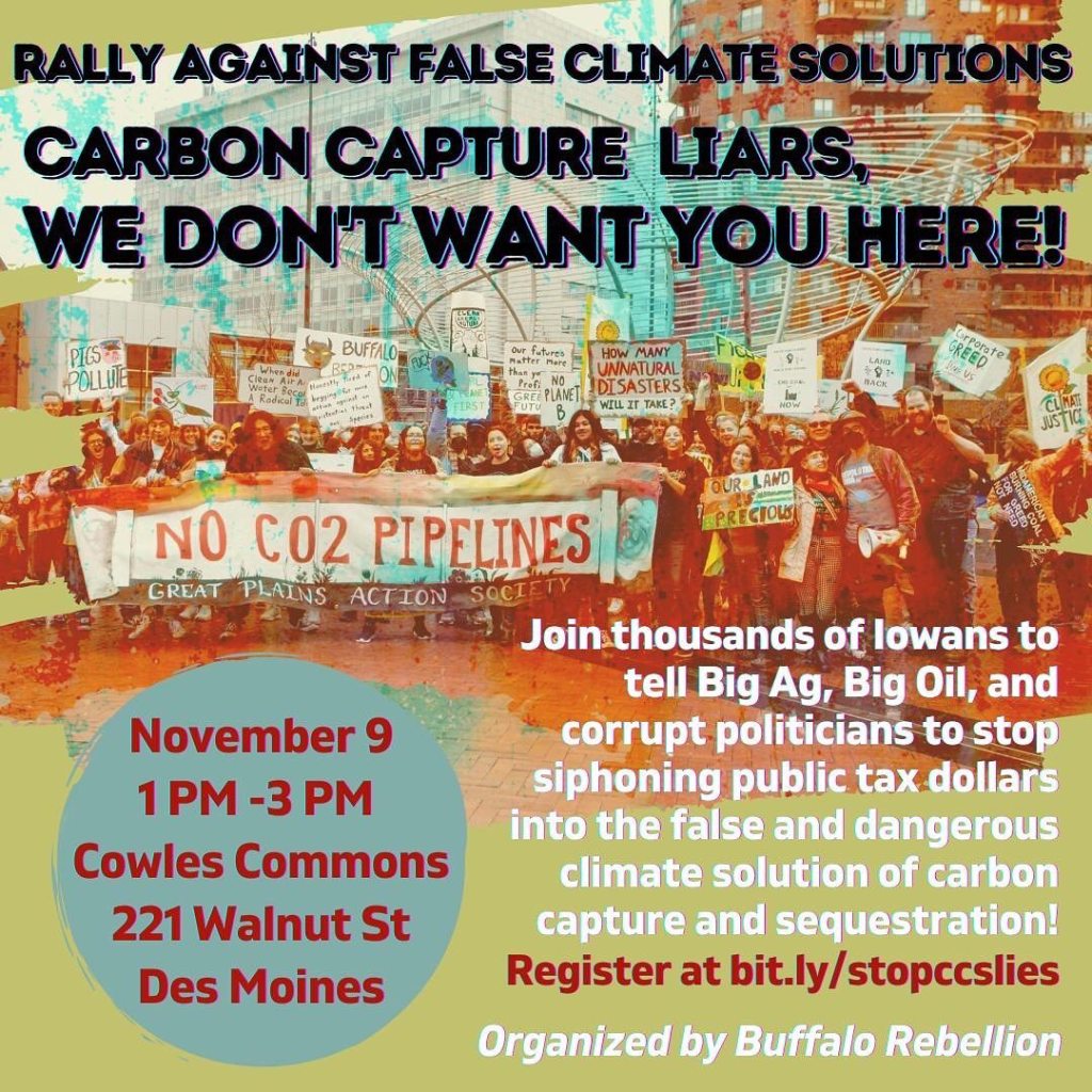 Iowa Citizens for Community improvement is very active in environmental and many other concerns and a member of the Buffalo Rebellion. “We talk, we act, we get it done” is their motto. I’ve participated in several environment related actions led by my friend Jake Grobe, ICCI’s Climate Justice Organizer. He has focused on getting MidAmerican Energy to close their five coal burning plants in Iowa. And Jake is very active in the resistance to carbon (CO2) pipelines.