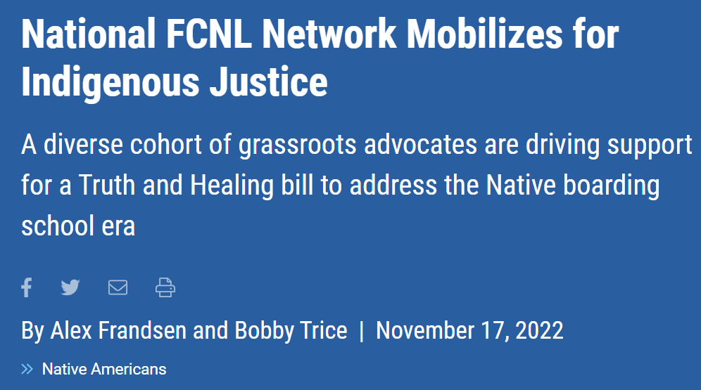 Support the Establishment of a Truth and Healing Commission on Indian Boarding Schools: Friends Committee on National Legislation (FCNL)