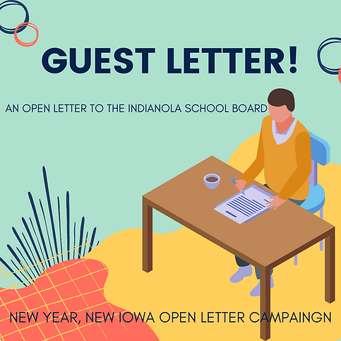 Resolutions are not just for January! As we are gathering momentum for the daunting work 2022 has in store for us, we would like to invite you to join us in ushering in a New Year/New Iowa. Things need to change. The harm we are doing to the environment is devastating. The attack on truth in public education is a contributing factor to our attempted erasure. The ongoing use of racist mascots harms children, and perpetuates dehumanization. Iowa has a lot of issues. The work we need to do to make Iowa better is not going to be easy. But it can be done, and the best chance we have is working together. And that is why we are coming to you with our Open Letter Campaign.