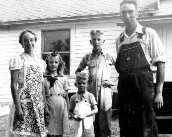 Eva contracted tuberculosis as a young bride. Ellis, her husband, took her to several doctors in Cedar Rapids and they all said there was no cure and she would die. In the little Quaker village in Whittier, Iowa, there was a homeopathic doctor. Dr. Ross came by horse and buggy several times a day and her remedies cured Grandma Eva. Grandma studied the different remedies and relied on homeopathic medicine the rest of her life. She taught her children and Grandchildren how to use the remedies, also. She and Grandpa had five daughters—Lorene, Irma, Hazel, Wilma and Clyda. She always helped milk the cows, raised lots of chickens, had a big garden, and canned a lot of food. She was known for her beautiful flowers, her good cooking, and her friendly hospitality. Grandpa didn’t believe in commercial fertilizer. He built up his soil with manure and rock phosphate. Grandpa ground the wheat they raised and Grandma baked her own bread. She also sold extra to neighbors and to the Health Store in Cedar Rapids.