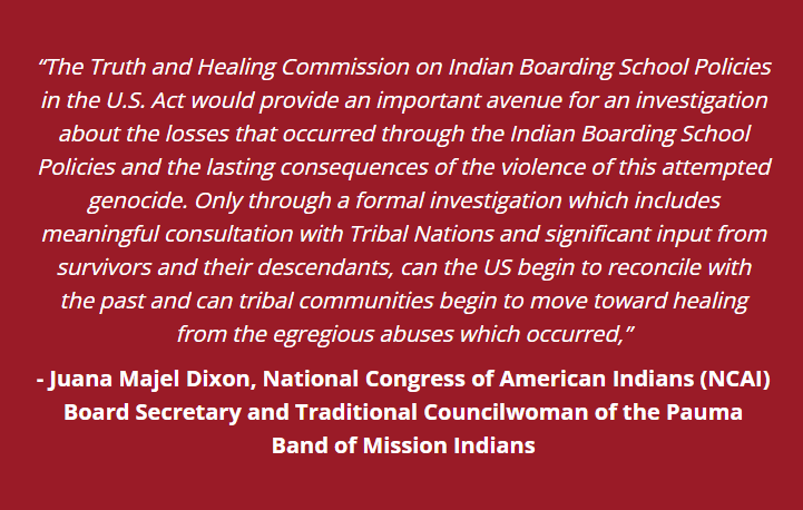 Help us bring justice, accountability, awareness, and healing by telling the unvarnished truth about America’s history and genocide committed against Indigenous Peoples by way of Federal Indian boarding school policies. NABS asks us to please call members of the House’s Indigenous Peoples Caucus and request that they bring forward HR. 5444, the Truth and Healing Commission to the floor for a vote #NABS #Time4Justice