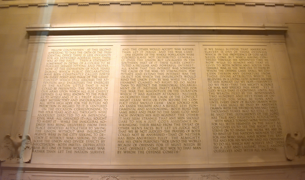 Some of the photos that mean the most to me are of the Lincoln Memorial. I was blessed to take a number of trips to Washington, DC, for meetings of the Friends Committee on National Legislation (FCNL). Because of my beliefs about fossil fuels, that meant 20-hour train trips between Indianapolis and Washington, DC. Longer if we had to wait for freight traffic.