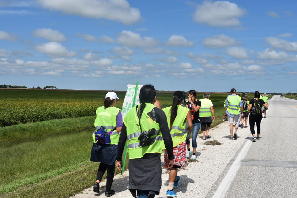 This is an example of supporting each other as we walked and camped together for ninety-four miles along the route of the Dakota Access Pipeline during the First Nation-Farmer Climate Unity March in 2018. https://firstnationfarmer.com/