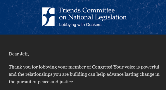 Minute your concern and commitment to action, including your support for this bill in your monthly meeting, Friends church, and/or yearly meeting.