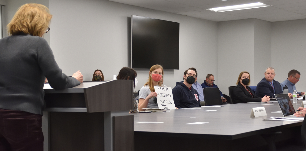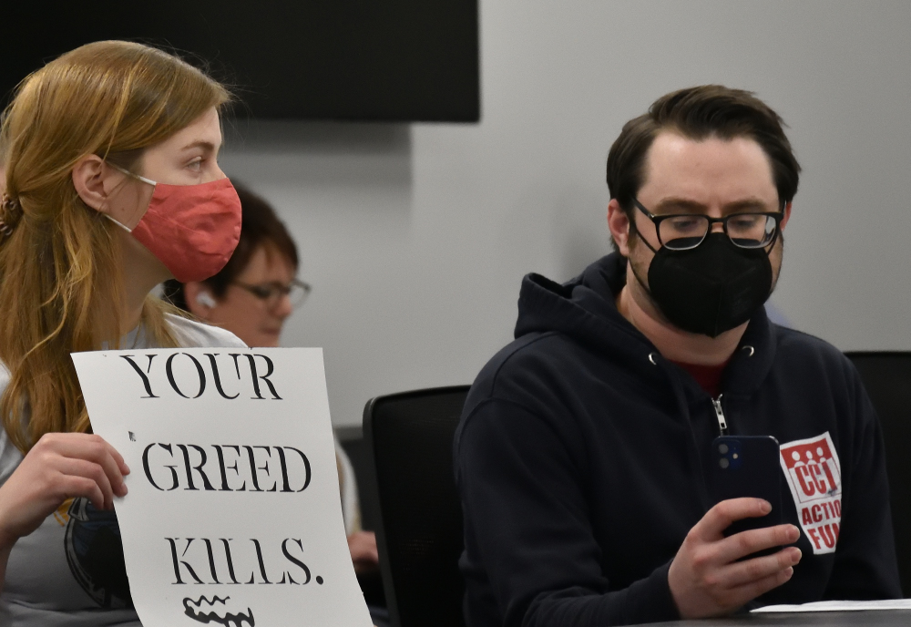 In February Jake organized people to attend a meeting at the Iowa Energy Center. The reason for going to the meeting was MidAmerican’s CEO Kelcey Brown had refused multiple requests to meet with ICCI and she was going to be at this meeting. I was there to take photos and wrote a blog post about the meeting. https://quakersandreligioussocialism.com/2022/02/18/stopburningcoal