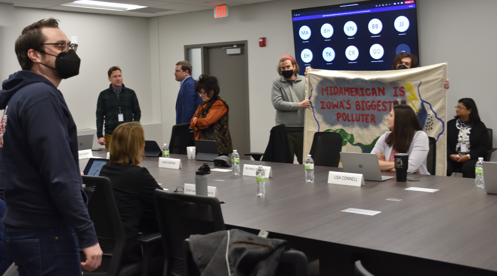 And most recently, my friend Jake Grobe at Iowa CCI organized an event in February at an Iowa Energy Center Board Meeting, where we said MidAmerican Energy’s coal burning power plants must be shut down.