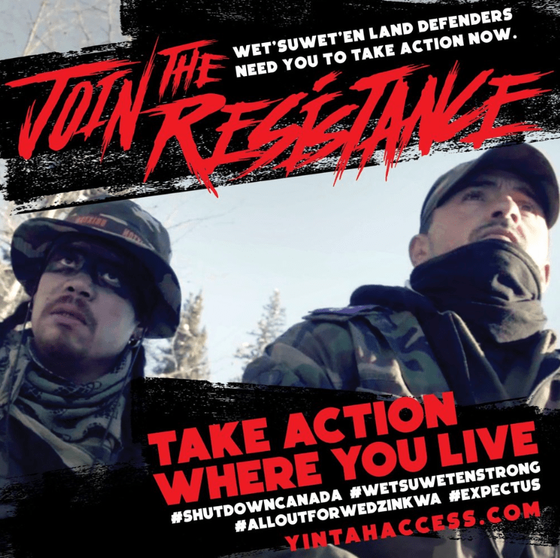 In the days leading to this police action, RCMP C-IRG have been found patrolling Wet’suwet’en traplines and cultural use areas, harassing and intimidating Wet’suwet’en members and disrupting constitutionally protected Wet’suwet’en cultural activities. Members of a private security firm hired by Coastal Gaslink pipeline, Forsythe, have also escalated harassment and surveillance efforts against Wet’suwet’en members in recent days.